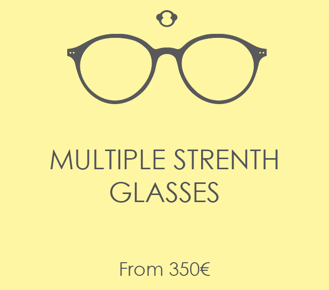 Our multi-strength lenses standard has a wide reading field, anti-reflective treatment, and hardening for optimal clarity and durability.